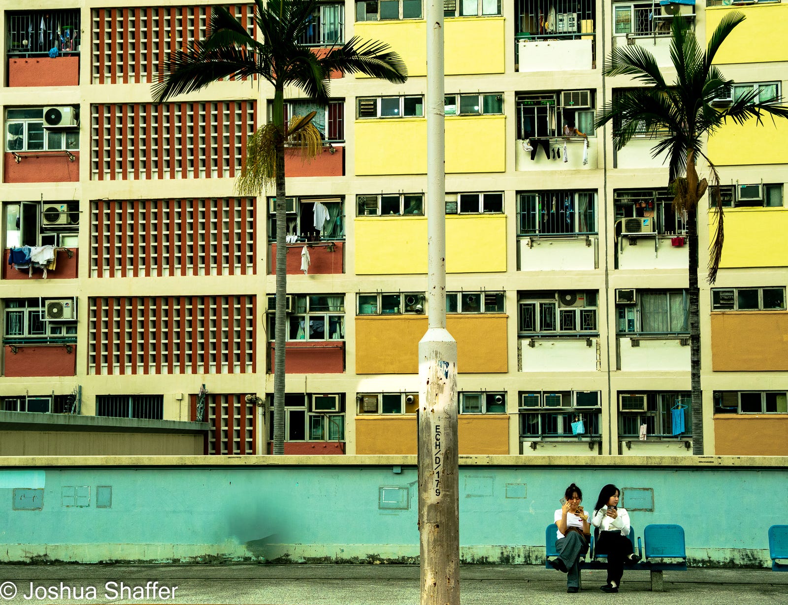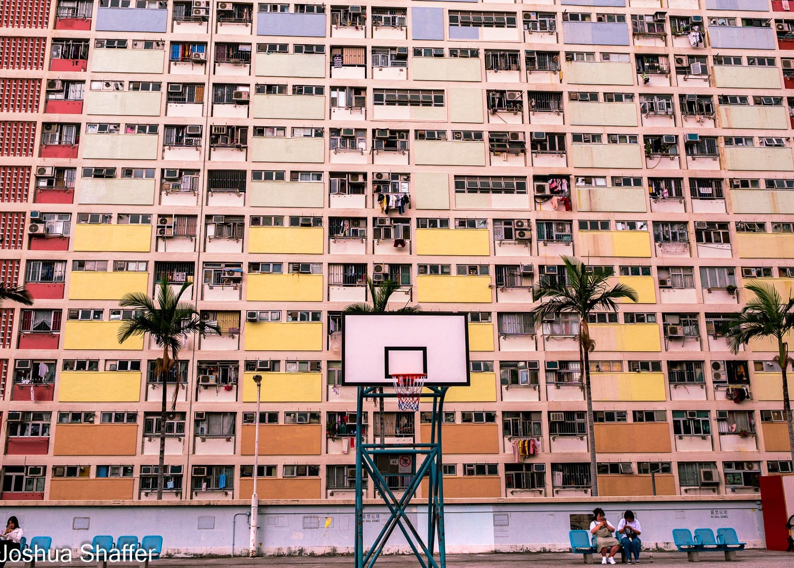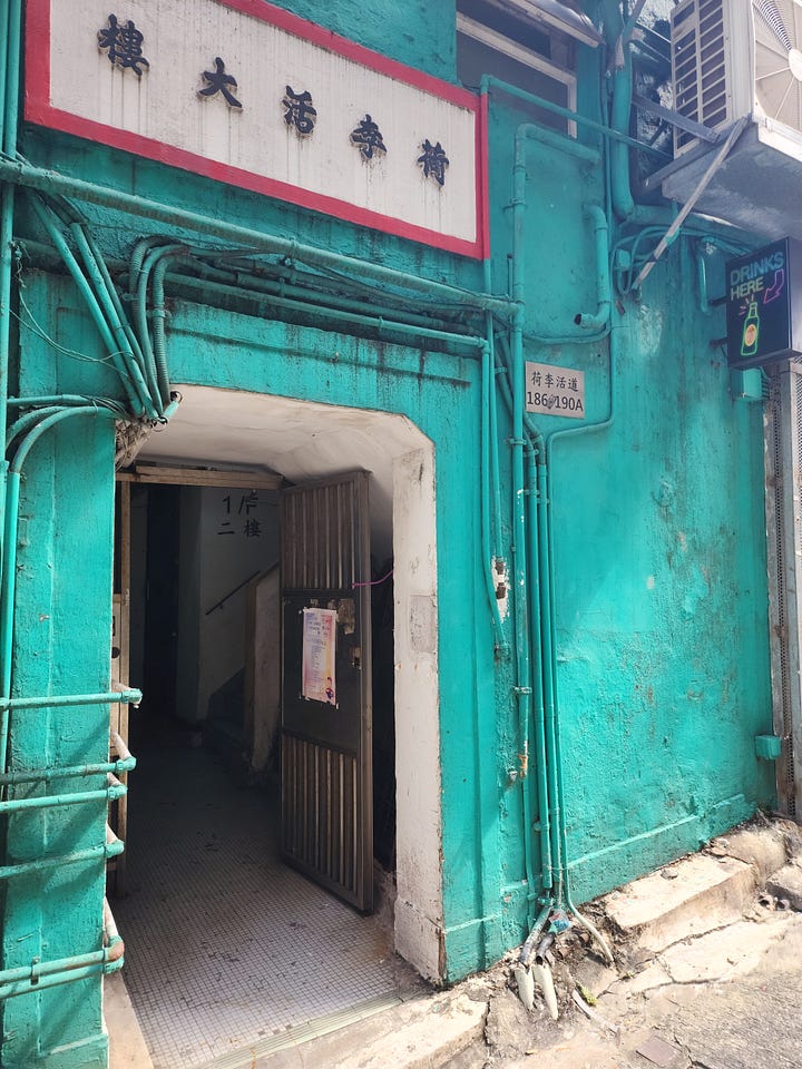 Ten minutes down the green line, a left down a nondescript alley road, and I arrived at the block of apartments known as the Choi Hung estates. Another amazing Hong Kong history spot soon to be relegated to the dustbin of forward progress- the blocks are being phased out of existence, possibly starting demolition as soon as next year. The 10 complex “rainbow apartments”, as they are known, were opened in the early 1960s and held 43,000 occupants- a record-setting number for the time. A more egalitarian and optimistic vision of what Hong Kong could be, the site attracted celebrity and political attention: a pre-presidential Ol’“Tricky” Dick Nixon himself visited within the first few years of it opening. He played badminton on the same court where I was now snapping pictures11. A pair of English Princesses made a point to seek out the apartments in the swingin’ 60s as well, if you are more impressed by birthright monarchy than with self-made Quaker criminal presidents…