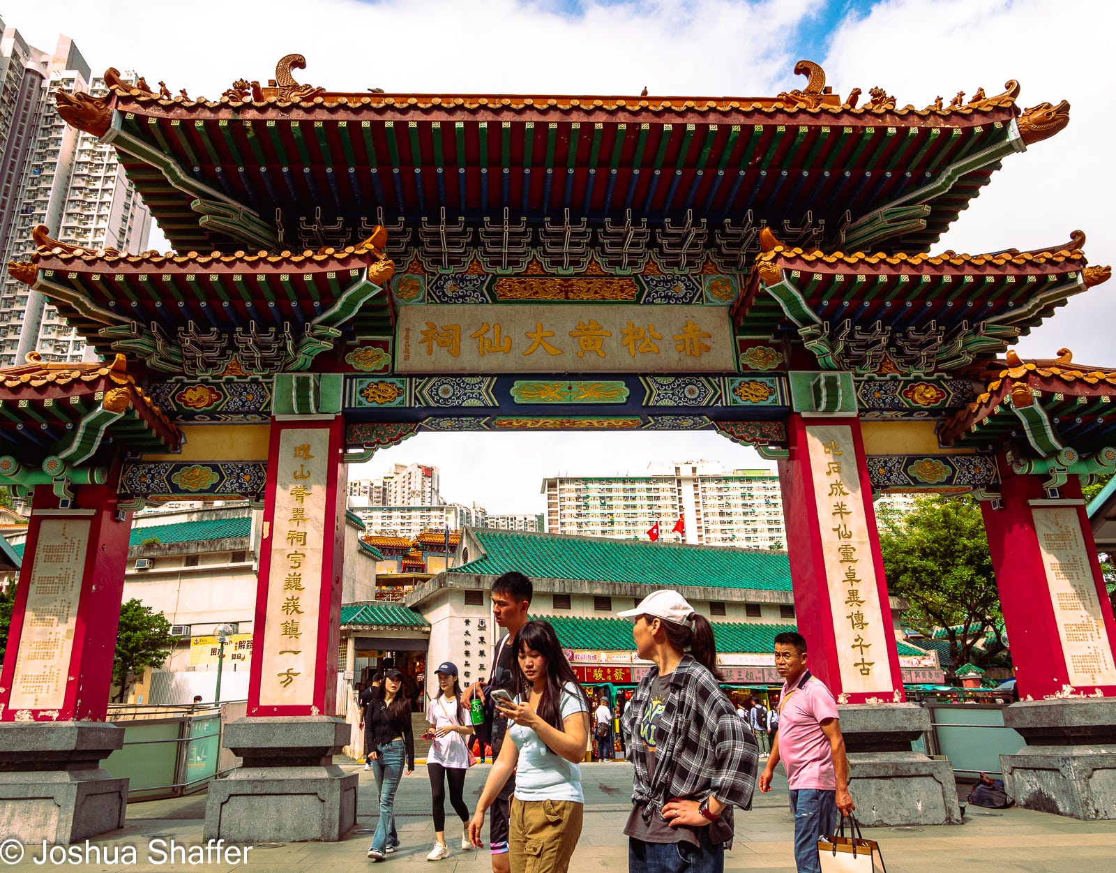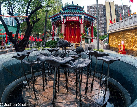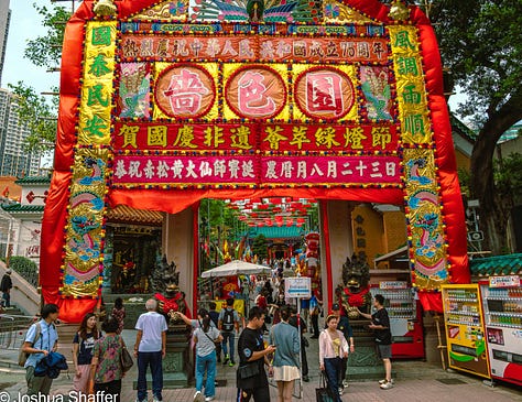 After lunch, a 30-minute MTR trip got me to northeastern Kowloon. My afternoon plan was slight, for me- it consisted of three photogenic spots- first up the Nan Lian gardens, whose underpass entrance belies the beauty within, then Wong Tai Sin Temple, followed by the uber-trendy spot of the Choi Hong estate complex- also called the “rainbow” apartments, where jockeying for best camera position was a contact sport…