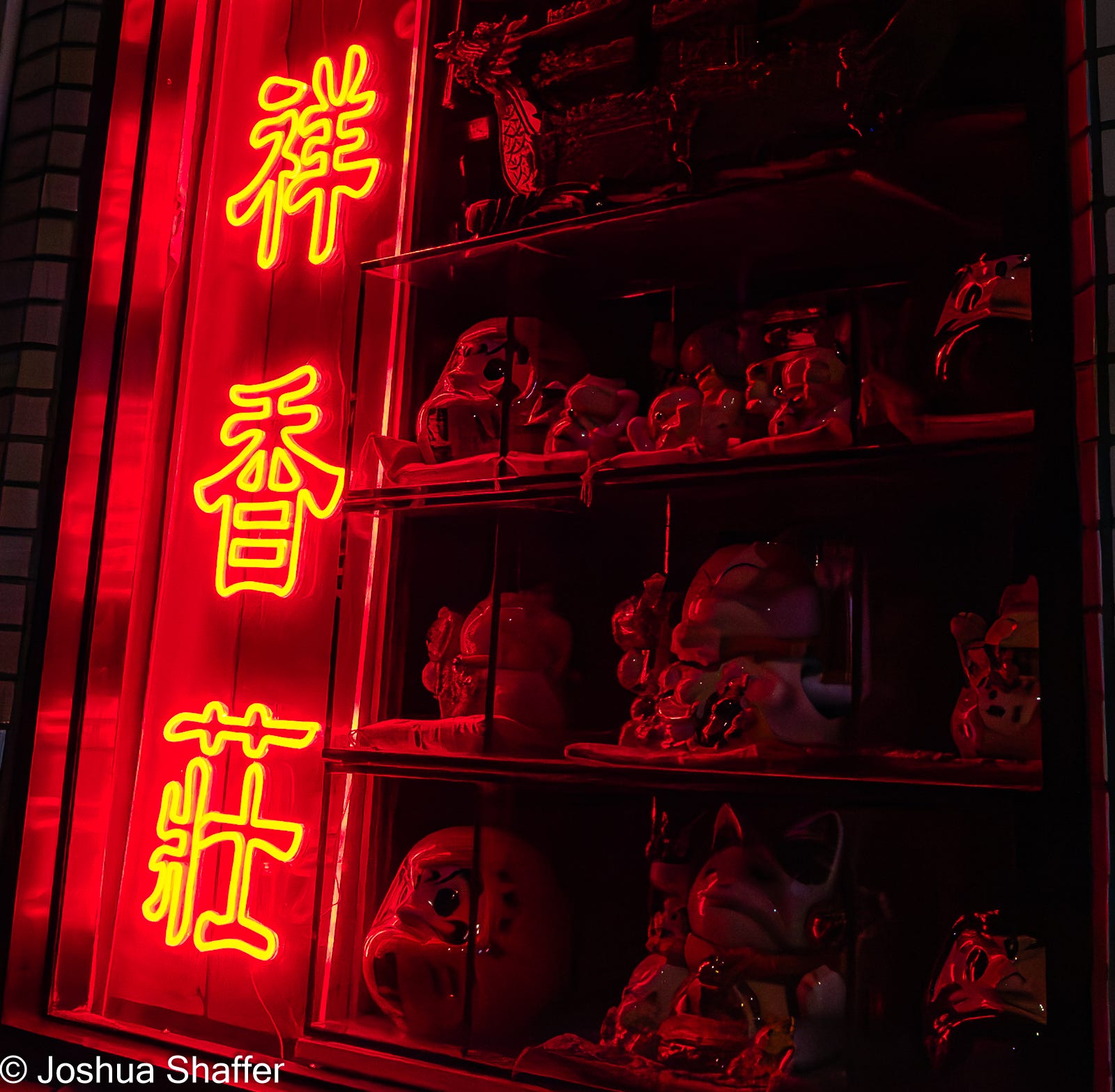 But, history aside, you may ask: how was the food? It was getting late and we were hungry, so after a quick check of restaurants on the main strip of the village, we settled in at Tung Fong Siu Kee Yuen. This family restaurant served us a mid-afternoon kip of morning glory shrimp (shell on, which always makes me sad), squid fried rice, fried spring rolls (best part), and dim sum. Washing it down with a couple of liters of ice-cold San Miguel5 helped the whole meal come together. Thanking the owners (and getting an enthusiastic “thumbs up” in return), we headed down the main riverfront drag towards the Old Tai O public pier, stopping by a couple of temples and shrines- and whatever other off-shoot signs we saw along the way.