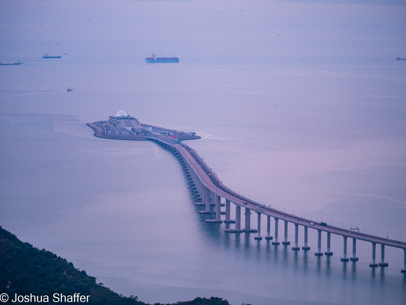 Slowly making our way back to the village in the late afternoon, we were dismayed to find the bus to Ngong Ping (and to our sky tram) no longer in service for the day. Eventually, we rousted the solitary snoozing taxi driver in the bus station lot who, after sighing deeply and putting out his cigarette like it was the world’s greatest inconvenience6, took us (also at a freakishly dangerous speed) back to the giant Buddha, touristy village, and our sky tram escape route.