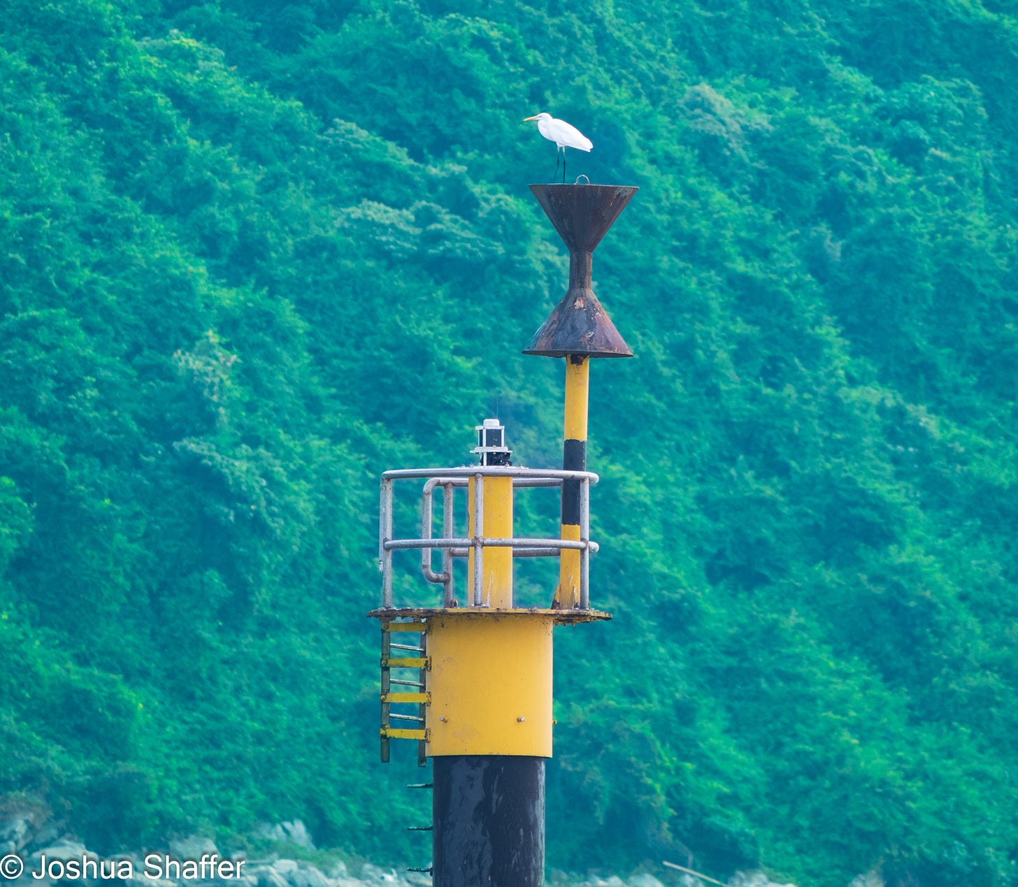 Feeling good to rest after all the go-go-go time, we whittled away some time watching the gulls and cranes at the old ferry point on the edge of the island. A panorama of grey-blue water giving way to rocky outcroppings and verdant green jungle made the place seem even more remote- the only other humans in sight were on fishing boats and distant cargo ships edging out towards the horizon.